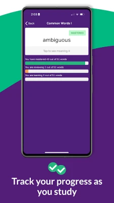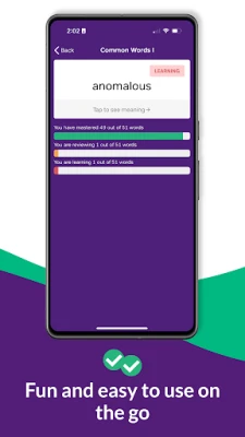 Your practice will focus on the words that you need to review the most to make sure the words you learn will really stick.