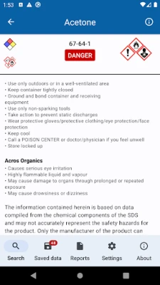 The EMS.GHS/SDS for Android devices and tablets as well as iPhone and iPad is a multi-lingual tool that offers access to Safety Data Sheets (SDS) and hazard summary information including GHS Pictograms and Labels on chemicals that can provide critical data for safety and emergency response.
