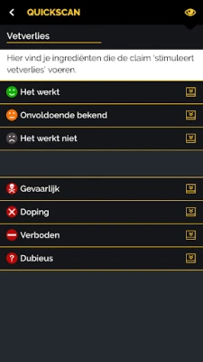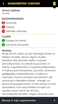 Met de App krijg je informatie over ruim 3000 van de meest voorkomende ingrediënten/stoffen die met het oog op fitness en sport in de markt zijn gezet. De bespreking en beoordeling van de ingrediënten stellen de gebruiker in staat om zich een goed beeld te vormen van het merendeel van het aanbod aan supplementen.